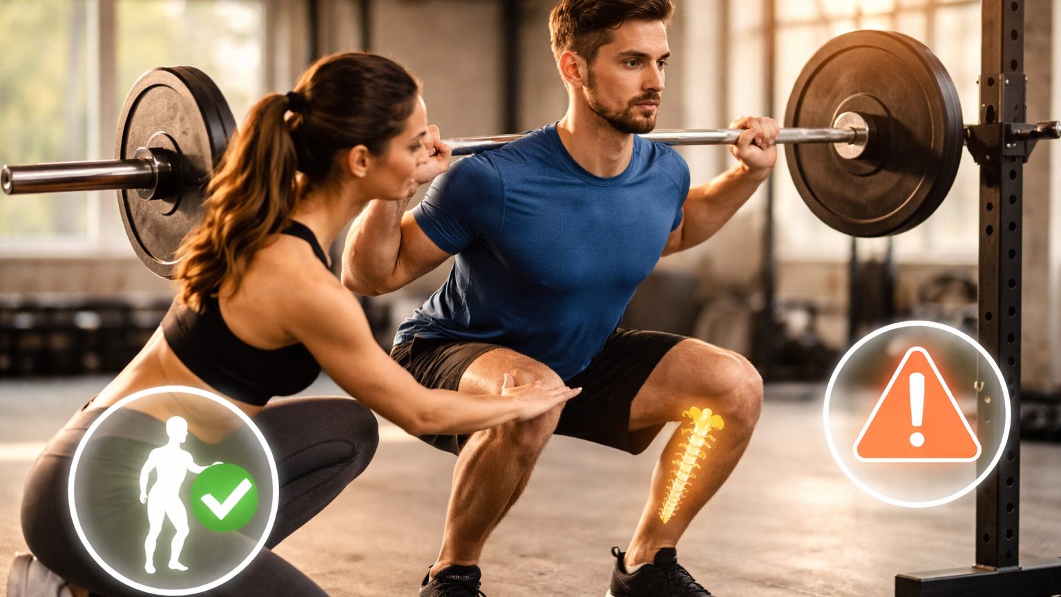 Например, при неправильном приседании нагрузка может смещаться на колени вместо распределения между тазобедренными суставами и мышцами ягодиц.